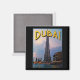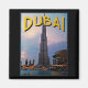 Die exotische Stadt Dubai strahlt in diesem Deko glorreich inspiriertes Design. Ein großer Wolkenkratzer und mehr Wolkenkratzer gegen einen dramatischen Himmel und Wasser unter.