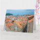 Malerei von roten Dächern und blauem Meer aus Dubrovnik Stadtmauer in Dubrovnik, Kroatien. Aussicht von oben auf die Altstadt.
