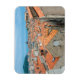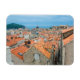 Malerei von roten Dächern und blauem Meer aus Dubrovnik Stadtmauer in Dubrovnik, Kroatien. Aussicht von oben auf die Altstadt.