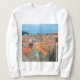 Malerei von roten Dächern und blauem Meer aus Dubrovnik Stadtmauer in Dubrovnik, Kroatien. Aussicht von oben auf die Altstadt