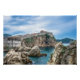 Malerei der Festungsmauern, felsige Küste und blaues Meer in Dubrovnik, Kroatien. Atemberaubende Aussicht auf die Stadtmauer von Dubrovnik und die Altstadt von Dubrovnik...