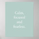 Duck Egg Minimalistisches Zitat-Poster mit einem einfachen inspirierenden Zitat: "Ruhe, konzentriert und furchtlos." Der Text ist leicht in der Online-Personalisierungsvorlage personalisiert, wenn Sie den Text ändern möchten. Wenn Sie die Größe des Textes ändern möchten oder die Hintergrundfarbe ändern möchten, klicken Sie bitte auf die Option "Weiter anpassen".