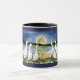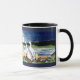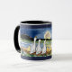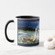 Mein urheberrechtlich geschütztes Originalgemälde "Mond Ducks" wird auf einer dunkelblauen Designer-Tasse neu interpretiert.