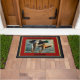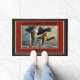 Mit einem atemberaubenden Blick auf zwei Enten, die über den Ozean fliegen Mit einem kleinen Boot darunter. Und eine Insel. Diese Bodenmatte hat einen schwarzen und goldenen Rahmen. Die Texttöne und Textfarbe können in eine beliebige Farbe geändert werden, die Sie gewollt haben.