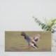 männliche Stockente, die an einem ruhigen, ruhigen Morgen im März ins Land kommt.