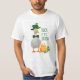 Eine niedliche, glückliche Ente mit einem irischen Hut und einem Goldtopf mit Kleeblättern.