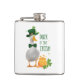 Ein niedliches St. Patrick's Day Design mit einer glücklichen Ente mit einem grünen irischen Hut und einer Bogen-Krawatte neben einem Goldtopf mit Kleeblättern.