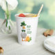 Ein niedliches St. Patrick's Day Design mit einer glücklichen Ente mit einem grünen irischen Hut und einer Bogen-Krawatte neben einem Goldtopf mit Kleeblättern.