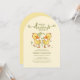 Eine niedliche Babydusche-Einladung mit "Zwei süße Kleine sind unterwegs" in sanfter, zarter, moderner Typografie und stilvoller Schrift sowie zwei süßen Entenlingen. Personalisieren Sie den Namen der Mutter-zu-sein und duschen Sie Details in einer schlichten grünen Typografie.