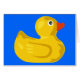 Einfache grafische Illustration einer niedlichen Cartoongelbente in der Anmerkungskarte des blauen Wassers. Diese Ente ist das Bild, das auf verschiedenen Geschenken und Produkten verfügbar ist. Fertigen Sie besonders an und wählen Sie Ihre eigene Entenhintergrundfarbe oder addieren Sie Text, wenn Sie brauchen.