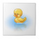 Eine sehr süße kleine gelbe Ente, die in das Wasser schwimmt.