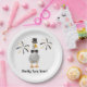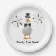 Feiern Sie den Neujahrsducky-Stil! Die Papierplatte ist mit einer niedlichen, weißen Pekinentanne mit einem Oberhut, Bogen-Krawatte und Feuerwerk ausgestattet. Die Meldung "Ducky New Year!" kann in jede Kopie Ihrer Wahl geändert werden.