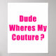 Dude Where's My Couture Sarcastic Funny Saying Shi Poster