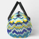 Duffel Bag, Ein vielfarbiges klassisches Zickzackmuster-Design. Ein kreatives, attraktives und trendiges Design der Duffle-Tasche. Ein Duffle-Beutel ist ein zylindrischer Tasche, der aufgrund seines geräumigen Interieurs und der einfachen Tragebarkeit mit Schultergurten oder Griffen häufig für die Beförderung von Kleidung und persönlichen Gegenständen während der Reise oder während der sportlichen Aktivitäten verwendet wird.