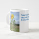 Fotos von gelben Sonnenblumen mit der Phrase "Nehmen Sie sich Zeit, ... halten Sie an und riechen Sie die Sonnenblumen", gedruckt auf Kaffeemugs. Fotos der gelben Sonnenblumen sind urheberrechtlich geschützt durch mich, Christina Spiegeland. Copyright 2016.