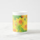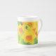 Eine weiche und weibliche Knochen-China Tasse mit einem Aquarell-Bild einer Gruppe von gelben daffodilen Blume.