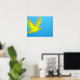 bewegliche, hellgelbe Taube auf blauem Hintergrund