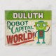 Funny Duluth Minnesota vintage travel design featuring a friendly robot with fun retro style text that says, "Duluth, Robot Capital of the world!"