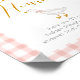 Fügen Sie Ihrer Feier mit diesem Schild "Silly Goose Is Soon to Be on the Loose Pacifier Hunt" spielerischen Spaß hinzu. Mit dem weichen rosa Gingham-Karo und der süßen weißen Gans-Illustration dirigiert dieses Babyshower-Schild die Gäste, während sie nach versteckten Schnullern suchen. Kombinieren Sie es mit passenden Bingo-Karten, Einsatzblättern für die Windel-Verlosung und Beratungskarten aus der Silly Goose Babyshower-Kollektion, um ein einheitliches rosa Gingham-Mädchen-Babyshower-Thema voller interaktiver Unterhaltung zu schaffen.