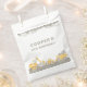 The ASHLAR construction birthday treat bags design features a white background with watercolor construction trucks including a dump truck, a loader, and an excavator in yellow, along with some cement blocks and dirt. A bold font in a gret with editable text completes completes this construction theme kids birthday favor bag for boy construction birthday.