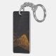 Ein Schlüsselring mit einem Foto auf beiden Seiten des Broch, Carloway, Insel von Lewis nachts mit Sternen und der Milchstraße.