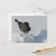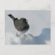 Schönes Foto eines dunkel-mit Augen Junco, der im Schnee eingestiegen ist. Ruhige Grauen und Weiße. Viel Platz, um Ihre eigene Beschriftung hinzuzufügen.