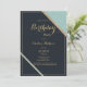 Eine moderne glamouröse dunkelblaue, aquamarine und goldene Glitzer geometrisch stilvolle stilvolle Birthday Party Einladung. Diese luxuriöse geometrische Einladung in Gold und Dunkelblau ist perfekt für jedes elegante und raffinierte Glam-Mädchen oder jeden. Dieses Design eignet sich ideal für ein trendiges und stilvolles Party. Passen Sie dieses Design mit Ihren eigenen Nachrichten und personalisierten Informationen an. Alle Designs sind gedruckt.