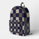 Dunkelblau-braune Karos Schachbrettmuster bedruckter Rucksack, entworfen von Nisha Prabhu. Machen Sie mit dem dunkelblauen braunen Karo Checkerboard Muster gedruckten Rucksack eine stilvolle Aussage. Dieser atemberaubende Rucksack zeichnet sich durch ein einzigartiges Schachbrettmuster in einer raffinierten Kombination aus dunkelblau und braun aus. Die kontrastierenden Farben schaffen einen kühlen und trendigen Look, der sicher den Kopf drehen wird. Der Rucksack mit seinen geräumigen Abteilen und bequemen Gurten ist so praktisch wie modern. Egal ob Sie zur Schule, zur Arbeit oder zu einem Wochenendaufenthalt gehen, dieser Rucksack ist das perfekte Zubehör, um Ihren Stil zu steigern. Mit dem dunkelblauen braunen Karo Checkerboard Muster bedruckter Rucksack heben Sie sich von der Masse ab.