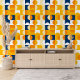 Dunkelblau-gelb-orangefarbene weiße Kreise Kunstmu Tapete
