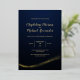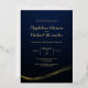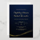 Elegante Einladung mit dunkelblauem Hintergrund und hochwertigen Goldlinien und Staubkonstruktionen. Diese elegante, minimalistische Einladung ist ideal für die Einladung Ihrer Gäste. Personalisieren Sie Ihre Veranstaltungsinformationen einfach in diese Vorlage, um eine einmalige Einladung zu erstellen.
