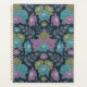 Dieser Planer ist in lila, blauen und olivgrün-Blume gehalten, umgeben von lila Farnfronten und Blätter auf dunkelblauem Hintergrund.