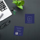 Klassisch marineblau. Personalisieren Sie Ihr Firmenlogo und Text auf der Vorderseite und fügen Sie es hinzu. Weiße Buchstaben. Zurück: Vorlagen für Ihren Namen, Titel, Telefonnummer, E-Mail- und Website-Adresse, Ihren eigenen QR-Code für Ihre Website oder Ihr Social-Media-Konto.