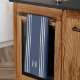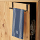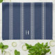 Rustikale, mit Monogramm Küchenhandtücher mit klassischer Schrift und vier Sets Seilstreifen, die auf einem marineblauen Hintergrund detailliert dargestellt sind, zeichnen Ihren Single aus.