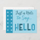 Nur eine Anmerkung zu hallo Senden Sie eine Postkarte an jemanden, den Sie interessieren, mit einer Nachricht von Ihnen. Denken Sie an Sie. Sag Hallo. Geht es bald gut. Versenden Sie ermutigende Worte. Viel Glück. Vermisst. Oder um sie lassen, wissen Sie, dass Sie sie Liebe haben. Dunkelblau und hellblau mit Polka-Punkten.
