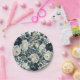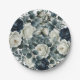 Dunkelblau & weiß Moderne Blumengrün Hochzeit Pappteller