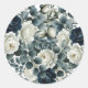Dunkelblau & weiß Moderne Blumengrün Hochzeit Runder Aufkleber