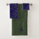 Dunkelblaue Blätter in Monogramm Badhandtuch Set