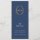 Dunkelblaue Goldblatt-Oval-Monogramm-Hochzeit Menükarte