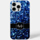 Dunkelblaue Imitate Glitzer Glitzern Monogram iPhone 15 Fall. Personalisieren Sie Funkelnd iPhone Gehäuse mit Ihrem Initial und Namen. Schöne mädchenhafte blaue glänzende Glitzer Glitzern. Foto der blauen Glitzern nicht wirklich Glitzer!