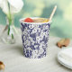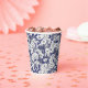 Dunkelblaue Linie zeichnend zarter Blütenhölzer Pappbecher