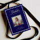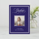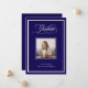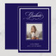 Diese formelle und moderne Abschlussankündigung der Klasse 2026 enthält einen dunkelblauen Hintergrund mit einem klassischen weißen Rahmen. Ein Foto des Absolventen befindet sich in der Mitte, und elegante fancy Kalligrafie-Schrift sagt "Absolvent" oben. Ein luxuriöser, anspruchsvoller Look für den erwachsenen Absolventen.