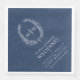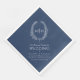 Ovales Kranz-Blatt-Design in weiß auf marineblauen blauen Hochzeitsnapkins. Fügen Sie Ihre eigenen Paare Monogramm Initialen, Name und Hochzeitsdatum in einem klassischen Weiß auf Marine dunkelblau. Andere Farben und passende Hochzeitsartikel sind erhältlich. © Original Blatt zeichn und Design von Sarah Trett für www.mylittleedenweddings.com auf Zazzle.