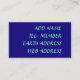 Stilvolle, dunkelblaue Visitenkarte, um sich selbst, Ihr Unternehmen oder Ihre Veranstaltung bekannt zu machen. Klicken Sie auf die Schaltfläche Anpassen, um die Textposition sowie die Farbe und den Schriftart der Buchstaben zu ändern, oder entfernen Sie die Schrift, um das elegante Design auf der Vorderseite verlassen und Ihre Daten auf der Rückseite der Visitenkarte zu speichern.