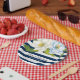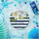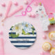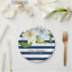 Dunkelblaue Streifen & Blume Moderne Blumenhochzei Pappteller