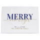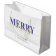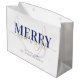 Dunkelblaue Typografie froh und hell Weihnachten Große Geschenktüte