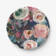 Dunkelblaue und blütenfarbene Pink-Wasserfarben-Bl Pappteller