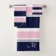 Dunkelblaue und rosa Streifen Badhandtuch Set