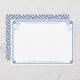 Chinoiserie Chic Note Card Design mit handbemalten blau-weiß Töpferhunden Staffordshire Hunden mit einem griechischen Key-Rand und Backer. Sie können die Kontrastfarbe auf diesen Farben in eine andere Farbe (derzeit als dunkelblau dargestellt) ändern, indem Sie das Designwerkzeug eingeben und die Hintergrundfarbe auf jeder Seite ändern.