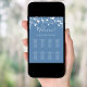 Ein trendiger, staubiger blauer Hintergrund. Mit weißen Sternen dekoriert. Personalisieren und fügen Sie den Namen der Braut und Bräutigam, fügen Sie Ihre Gäste Namen. Weißer Text.