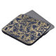 Ein elegantes trendiges marineblau-blaues und goldfarbenes, Vintag-schicke Blumenmotiv-Muster.Ein elegantes, gürtelgoldfarbenes rustikales, trendiges Boutique-Blumendesign auf blauem Hintergrund.